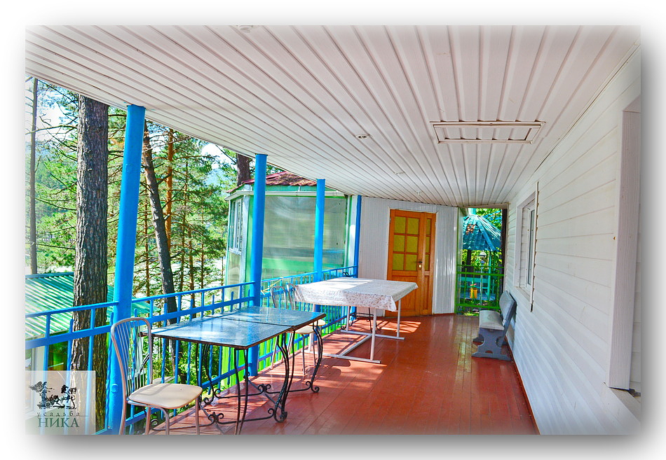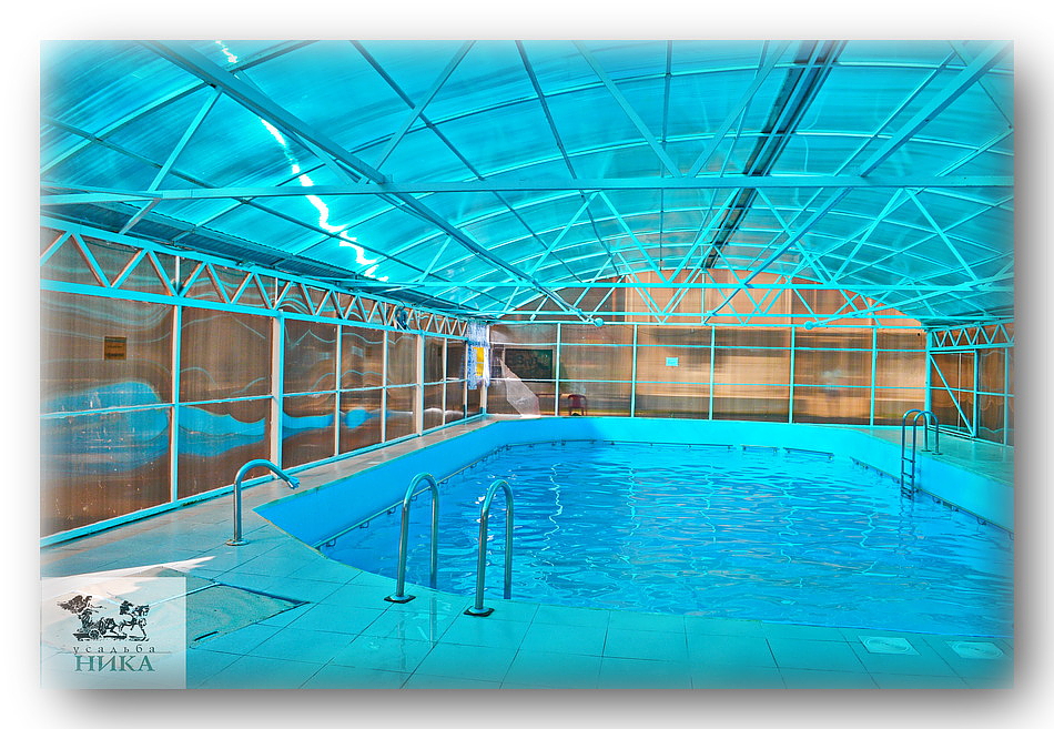 На территории базы отдыха "Усадьба Ника" находятся: теннисный корт, русская баня, сауна с крытым летним бассейном (3x4 м.), крытый летний плавательный бассейн (20 м.) с детским отсеком, место для приготовления шашлыков, бесплатная охраняемая автостоянка. Также детская игровая площадка (с песочницей, паутинкой, качелями и горками), беседка для отдыха, где можно устроить пикник, оригинальная освещённая площадка над рекой с шезлонгами, песчаный пляж.