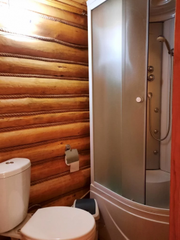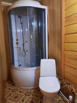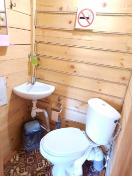 Туалетная комната: WC, раковина, душевая кабина, набор полотенец на проживающих в номере.