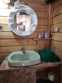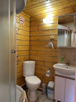 Туалетная комната: WC, раковина, душ, фен, набор полотенец на проживающих в номере.