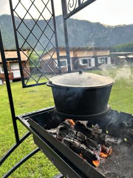 - Летняя кухня на 25 чел. со всем необходимым (плита, холодильник, микроволновая печь, чайник, посуда).
