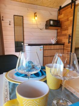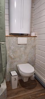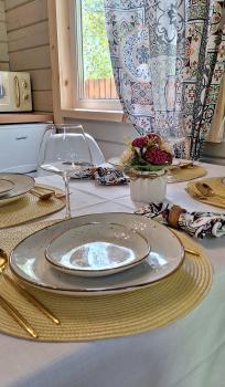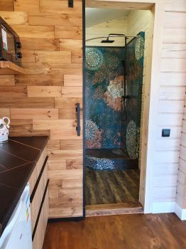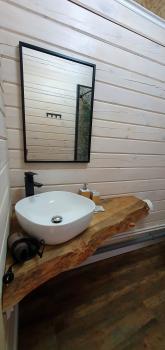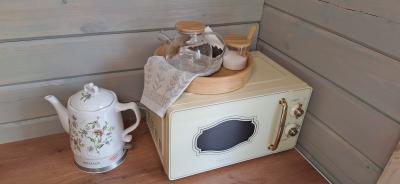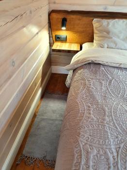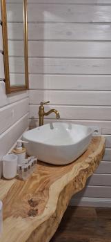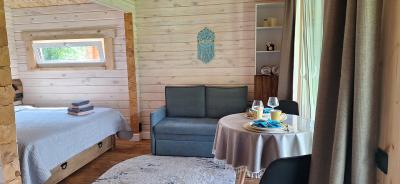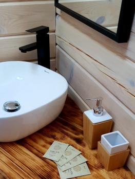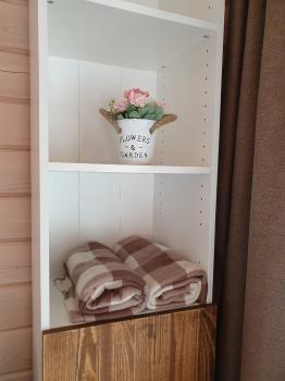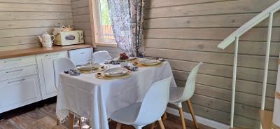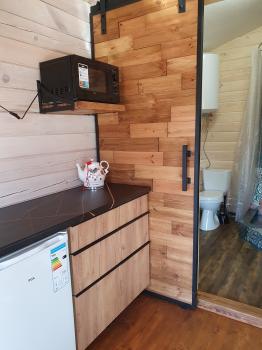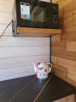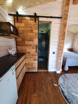 В доме санузел с теплым полом, душ, унитаз, раковина, большая 2х спальная кровать с изголовием из слэба кедра, диван, где могут разместиться 2е ребятишек, обеденная зона, кухонная зона с холодильником, микроволновой печью, керамическим электрическим чайником, комплектом посуды, кострюлей и сковородой, зона прихожей. Для гостей стелим уютное и натуральное льняное бельё, предоставляем комплект полотенец, фен, гель для душа, шампунь, жидкое мыло, туалетную бумагу, пледы, теновый обогреватель, Wi-Fi.