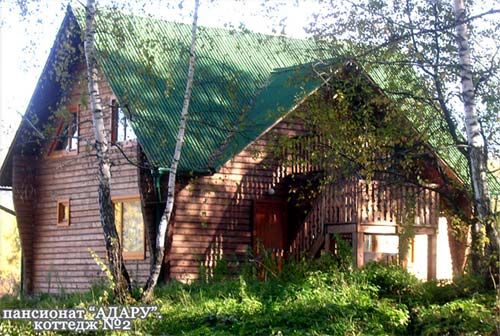 Третий коттедж рассчитан на 8-16 человек, учитывая дополнительные места. На первом и втором этажах по 2 двухкомнатных двухместных номера. В каждом номере спальня, небольшой зал с двумя дополнительными местами и санузел. В номерах есть холодильники, телевизоры, электрочайники, набор посуды.