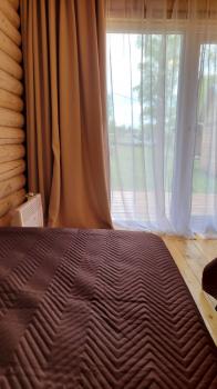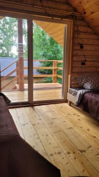 3 новых уютных дома из натуральных материалов (дерево). У каждого домика имеется красивая трасса со столиком и стульями. Панорамные окна и шторы блэкаут сделают Ваш отдых еще более комфортным. Каждый домик благоустроен