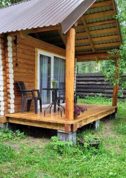 - Два домика одноэтажные площадью 16 кв. м (2 основных места + 1 доп за дополнительную плату). Панорамные окна, терраса. Туалет, умывальник в доме. От 3500 р.