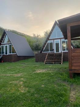 Гостевое дома A-frame расположены на просторном участке 25 соток.
