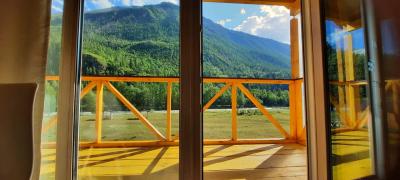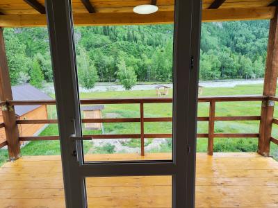 Вид из 3-хместного домика на реку и горы