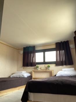 Дом 2+2 : 2 односпальные кровати + раздвижной диван.