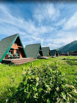 Усадьба "Kimky Altai" на берегу Катуни предлагает отдохнуть в отдельно стоящих благоустроенных домах А-фрейм, сочетающих традиции и комфорт.