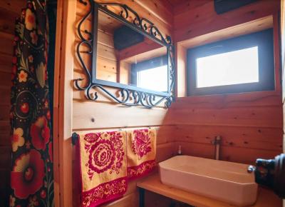 В доме: туалет, душ, комплект полотенец, мыло, фен. В санузле пол с подогревом (что крайне актуально в прохладные дни). Душ и пол в санузле отделаны добытым здесь же на Алтае природным камнем, сланцем с очень красивым названием, которое очень подходит ему в действительности - "Бирюзовая Катунь".