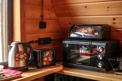 Кухонная зона, где можно приготовить горячие бутерброды в духовке и поджарить хлеб в тостере, заварить чай из алтайских трав! Чай и сахар всегда можно найти на столе! Угощение от Усадьбы! Есть холодильник и вся необходимая посуда. Вы сможете расположить свои чемоданы и вещи в отдельном гардеробе. Посидеть на мягком диване, смотря в окно на сосны и горы (диван легко трансформируется при необходимости в дополнительное спальное место). А прекрасно выспаться вам помогут матрасы с ортопедическим эффектом, красивое постельное белье и мягкие пледы. В домах Вы обязательно почувствуете запах кедра и сосны!