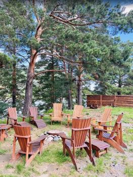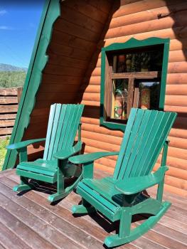 Отдыхайте у нас, смотрите на рассветы и закаты в горах, звездное небо, проплывающие облака на открытой большой террасе, сидя в легендарных креслах качалках "адирондак"!