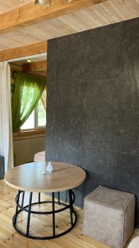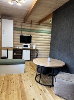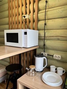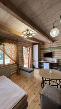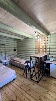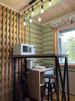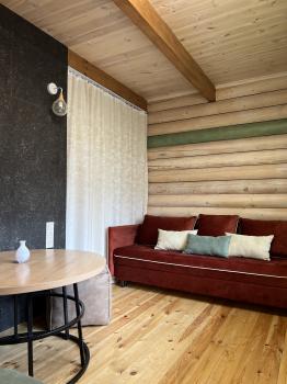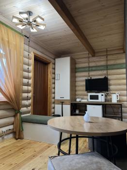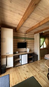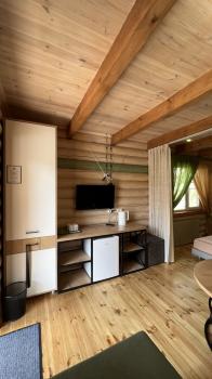 Для размещения турбаза предлагает благоустроенные, тёплые дома из круглого бруса с дизайнерским интерьером.