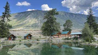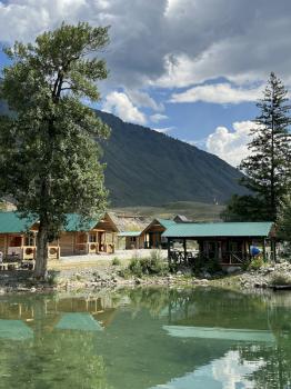 Турбаза "Елка" расположена в селе Чибит, в живописном месте на берегу реки с видом на лес и горы