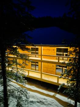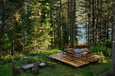 Панорамные окна и огромная терраса позволит насладиться видом на хвойный лес и озеро.