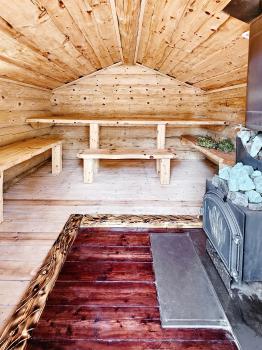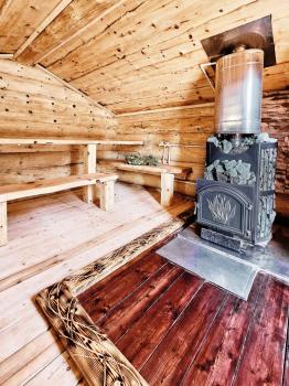 Баня «по-деревенски» срублена полностью из кедра. ПолкИ так же из массива кедра. Печь-каменка рассчитанная на 40 кубов пространства и заполненная 300 кг. трех видов лечебных минералов (габродиабаз, дунит, жадеит), выдает «плавный» пар за счет большого объема минералов, кто знает, тот оценит.