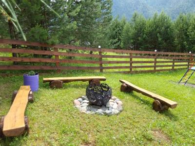 Рядом с усадьбой, в шаговой доступности магазины, кафе, "Лохматая ферма", слияние рек Катунь и Узнезя, до центра с. Чемал около 10 км.