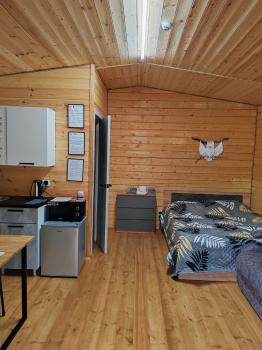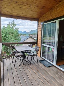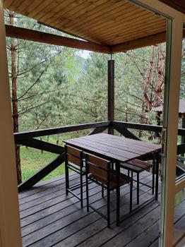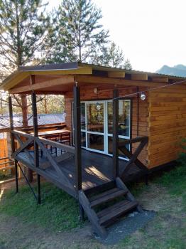 Площадь одного шале 20 кв. м и просторная индивидуальная терраса 10 кв. м.
