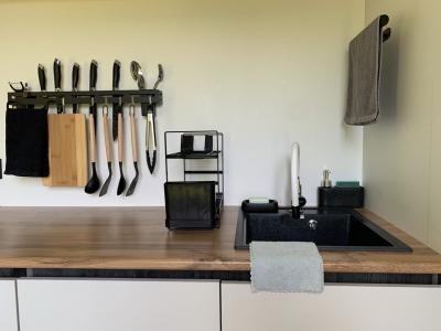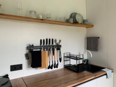 На кухне мы продумали все до мелочей, от плиты и микроволновки до красивой посуды.