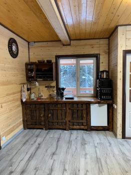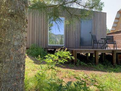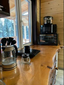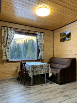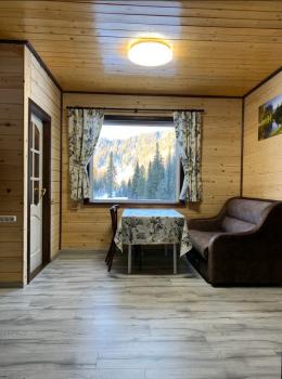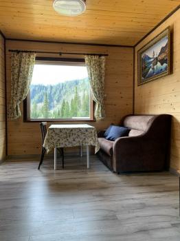Вы будете любоваться видом на горы и лес в большое панорамное окно, не вставая с кровати. Вечером, под игривые пузырики в бокале или аромат травяного чая смотреть на закат на открытой террасе, в теплом свете фонариков.