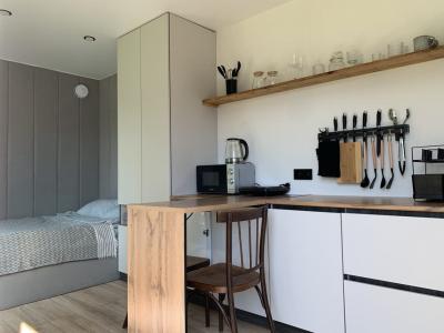 - Уютная гостиная совмещенная с кухней где есть: микроволновка, холодильник, индукционная плита, скороварка, вся посуда, а также продумана каждая мелочь для того чтобы вам было комфортно, есть телевизор и Wi-Fi.