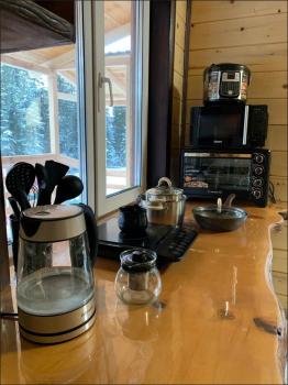 - Микроволновка, духовой шкаф, индукционная плита, скороварка, вся посуда.