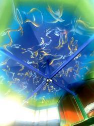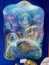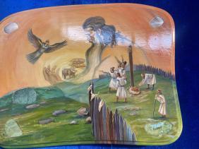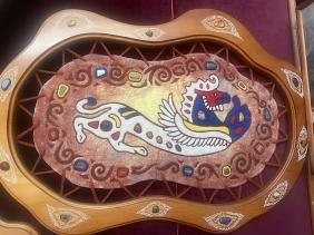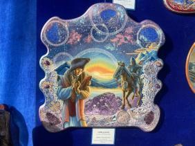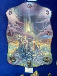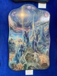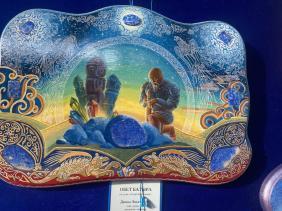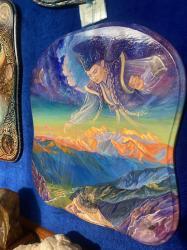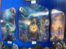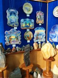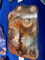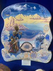 Как же создаются картины с уймонской росписью? Берется спил кедра, инкрустируется минералами. Художник видит в рисунке камня часть картины, рождаются образы и создается картина. Все работы уникальные, ни одна из них не повторяется.