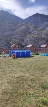 общая летняя кухня, где можно приготовить пищу самостоятельно, беседки с невероятными видами на горы и реку Катунь, костровые, мангалы и бассейн.