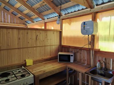 В домиках имеются вся посуда, холодильник, кровати, чистое глаженное белье и Wi-Fi по всей территории. Благоустроенный туалет и душ расположены на улице. Вода у нас питьевая со скважины.