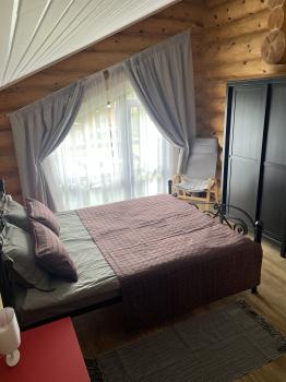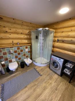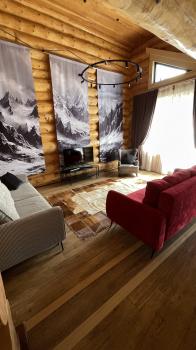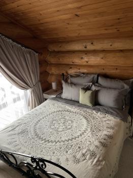 Дом построен из рубленного кедра, разделен на 2 половины:
