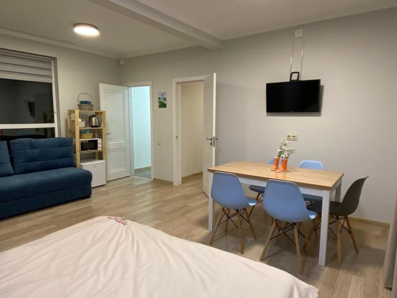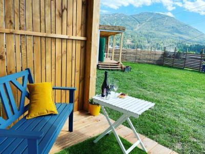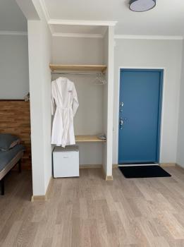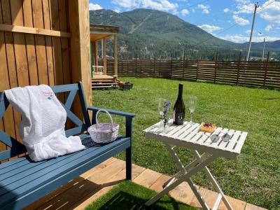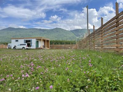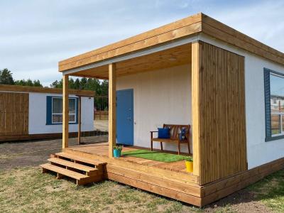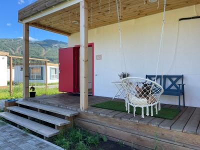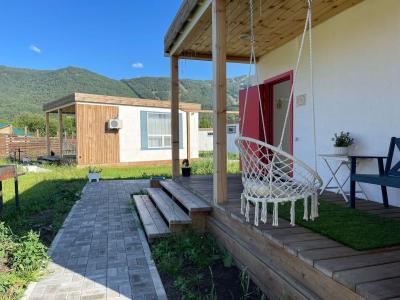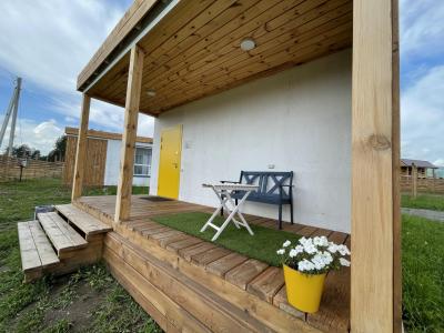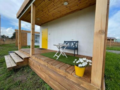 Для размещения гостей предлагаются отдельные мини-коттеджи, оборудованные санузлами с душем. Парковать машину можно прямо рядом с коттеджем.