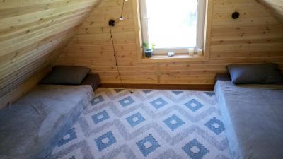 На мансардном этаже 2 односпальных места, есть возможность доп. места.