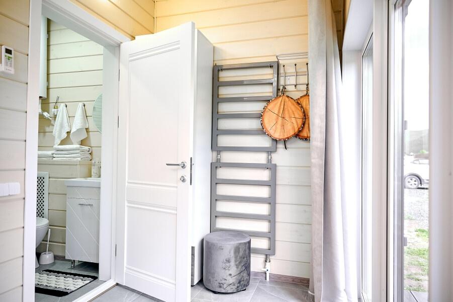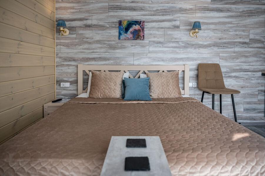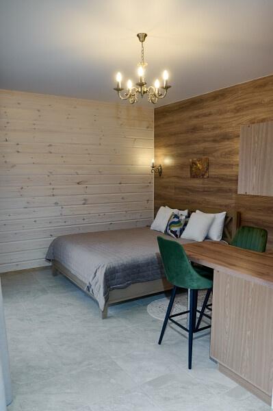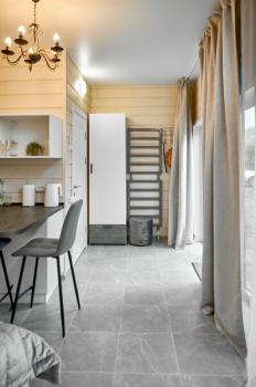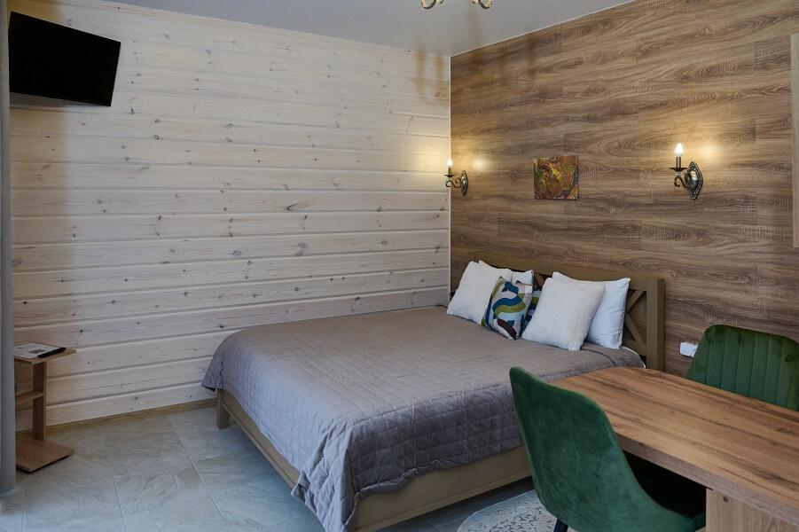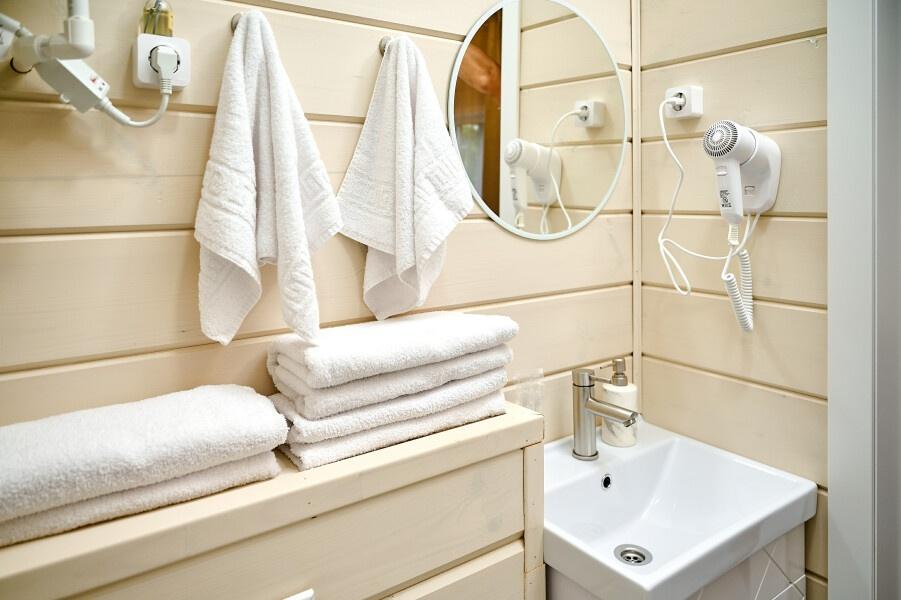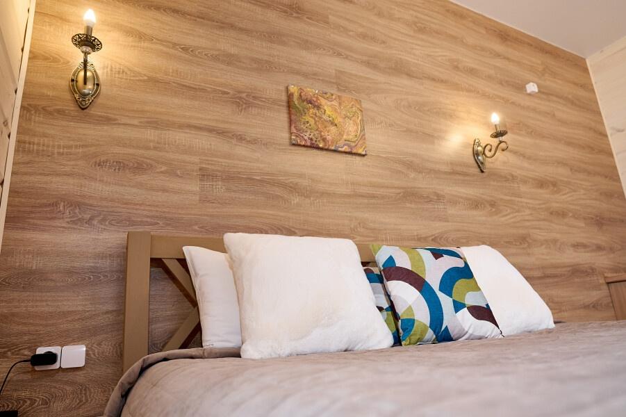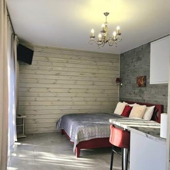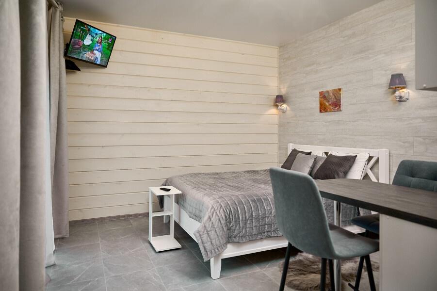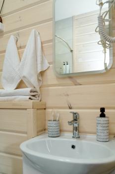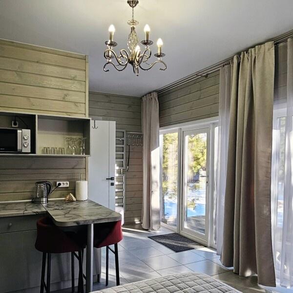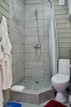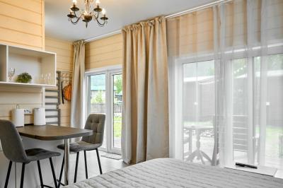 Для размещения отдыхающих предлагаются отдельно стоящие одноэтажные круглогодичные гостевые домики с панорамными окнами и верандами, с которых открывается прекрасный вид на горы как летом, так и зимой. В каждом домике есть санузел с душевой кабинкой, мини-кухня.