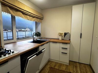 - Кухня, со всей кухонной утварью: холодильник, микроволновая печь, духовой шкаф, газовая плита (4 комфорки), посудомоечная машина, чайник.