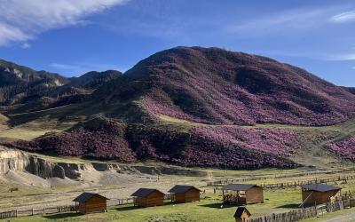 Гостевые домики находятся в отдалении от трассы, в спокойном месте между двух гор. Весной, когда цветет маральник, горы покрываются сиреневым ковром. Рядом с домиками течет река Инюшка, где можно рыбачить. Можно подняться на ближайшую гору на смотровую площадку с красивым видом.