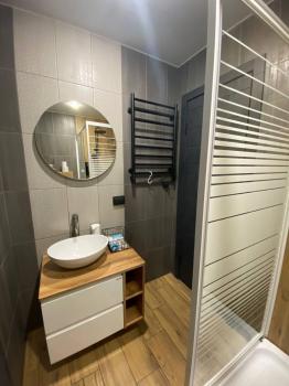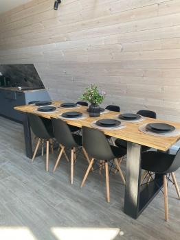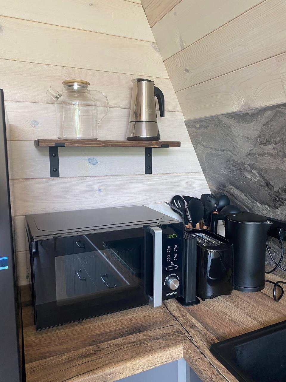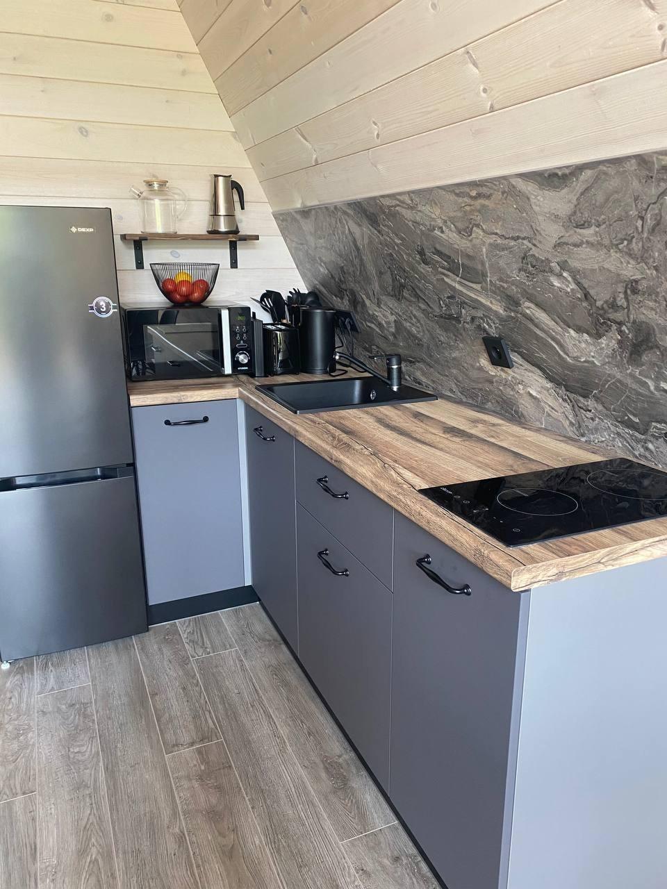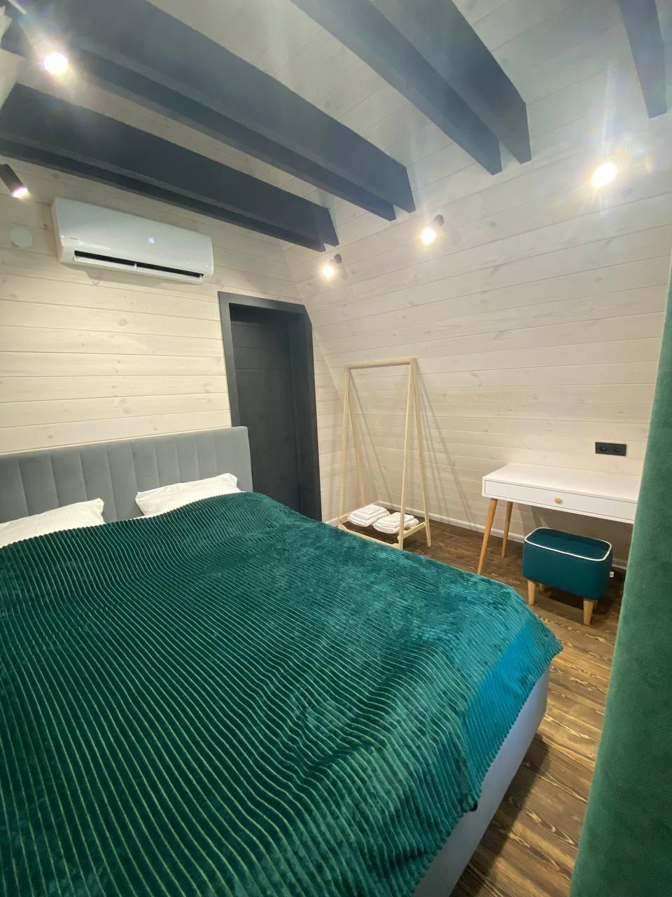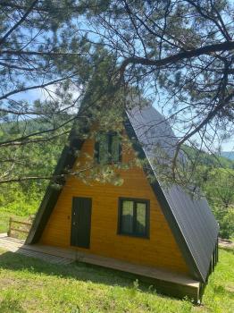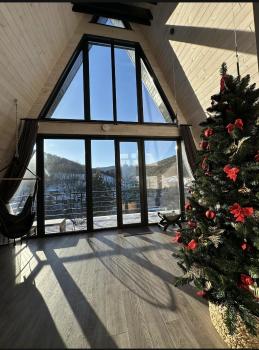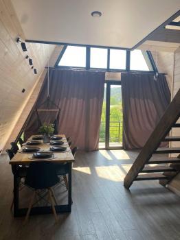 Комфортабельный дом A-frame, на 1-м этаже которого расположена кухня-гостиная с обеденной зоной и панорамными окнами с видом на горы, холодильник, индукционная плита, микроволновая печь, чайник, кофеварка, вся необходимая посуда, тостер, а также кондиционер, санузел, душ, угловой диван (полноценное двуспальное место), комната с двухместной кроватью. На 2-м этаже комната с двухместной кроватью и кондиционером.