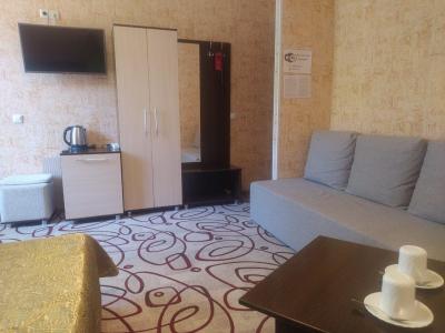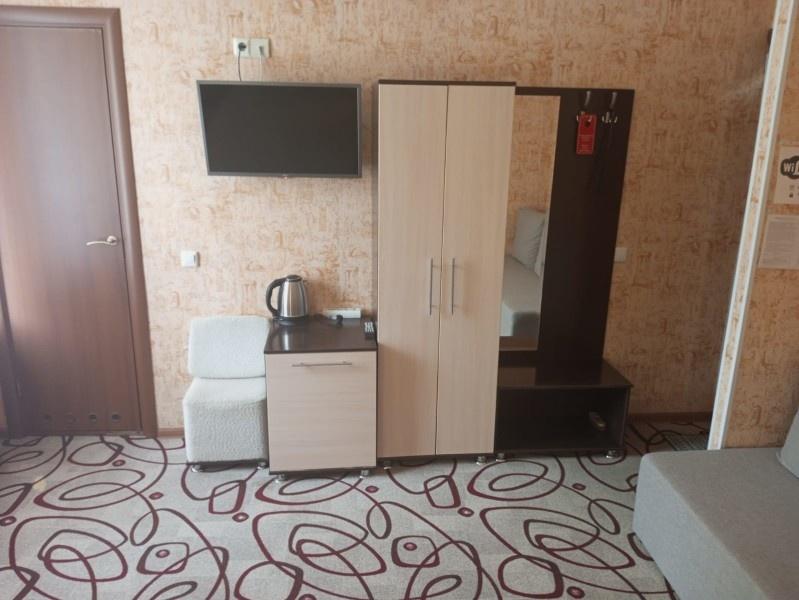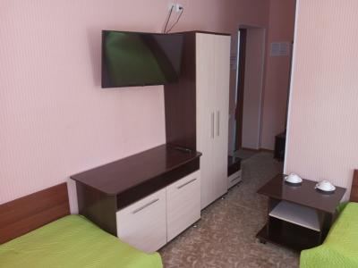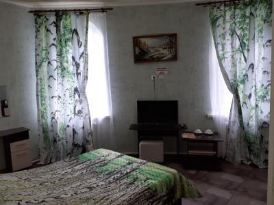 Для размещения гостей предлагается 4 двухместных номера категории "стандарт" два из них с общей двуспальной кроватью и два номера с отдельными односпальными кроватями. По желанию госей предоставляется дополнительное место раскладушка с комплектом постельного белья и полотенцами. В каждом номере есть санузел с душем. В номерах имеется телевизор, чайник, холодильник и необходимый минимум посуды. Также предлагается размещение категории "эконом" в двух- трех- и четырехместных номерах с общими санузлами и душевой на этаже.
