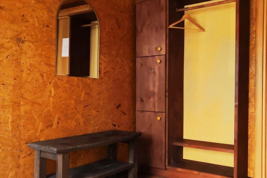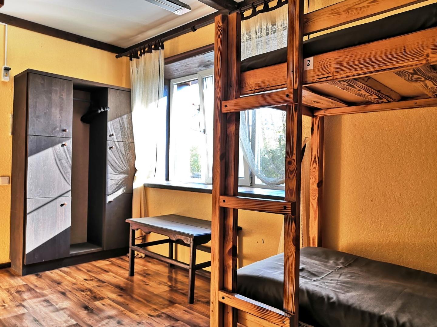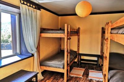 Первый корпус-хостел включает три шестиместных и два двухместных экономичных номера. На первом этаже корпуса находится общая кухня, семейный шестиместный номер, душ и туалет, вход на второй и третий этажи отдельный и расположен с обратной стороны дома. На втором этаже два шестиместных номера мужской и женский, душ, два туалета, холодильник и столик с чайником и микроволновкой. На третьем этаже два экономичных двухместных номера, туалет и раковина, холодильник и чайник. Гости с третьего этажа пользуются душем, расположенном на втором этаже.