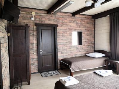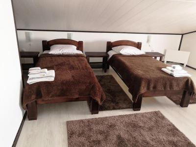 Второй корпус это мини-гостиница на 9 благоустроенных номеров два номера с двухспальными кроватями и диваном, один номер с двумя односпальными кроватями, которые при желании сдвигаются в одну двухспальную кровать, и один трехместный номер с двуспальной и односпальной кроватиями. На третьем этаже находятся четыре стандартных номера с раздельными кроватями, которые также могут сдвигаться в одну большую двухспальную кровать.