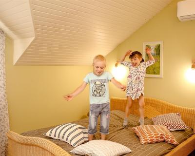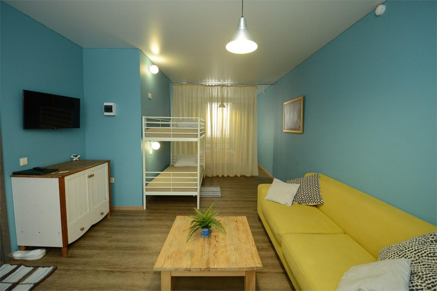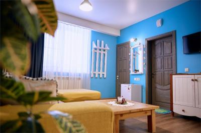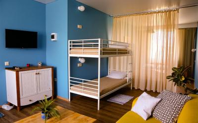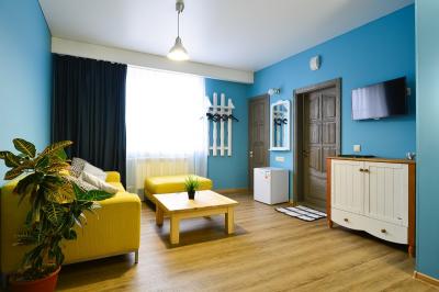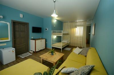 Для проживания гостей предлагаются номера с общим лаунджем, общей оборудованной кухней и небольшой детской игровой зоной. В номерах есть санузлы с душем и бесплатными туалетно-косметическими принадлежностями, халаты и тапочки, шкафы для одежды, письменный стол, телевизор с плоским экраном.