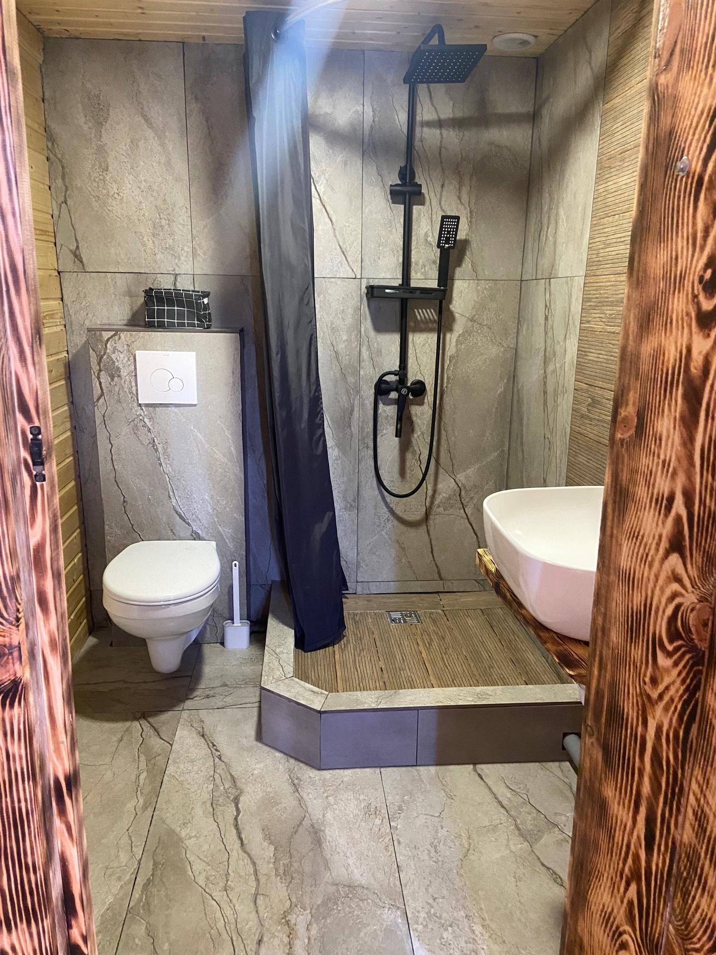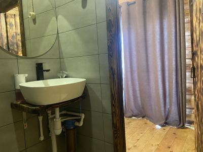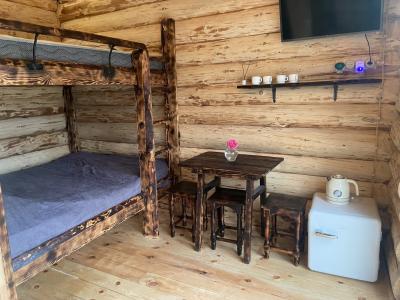 Для размещения гостей предлагаются небольшие благоустроенные гостевые домики с душем и теплым полом, на базе есть холодильник, микроволновка, Wi-Fi, стиральная машина, навес с мангалом, баня.