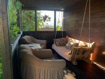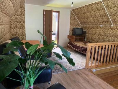 Для гостей сдается двухэтажный дом (второй этаж мансардный) с террасой и ванной комнатой с душем. Летом на участке есть бассейн, на территории работает Wi-Fi.