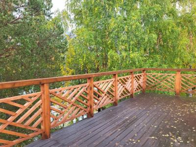 Гости турбазы размещаются в двухэтажных коттеджах в благоустроенных номерах из экологически чистых материалов.