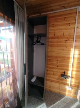 В каждом номере душевая кабина (полотенца, фен, шампунь), туалет, раковина, двухспальная кровать с белоснежным постельным бельем, шкаф для вещей.