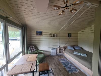 Дом с одной спальней, кухонной зоной, санузлом с душем, верандой.