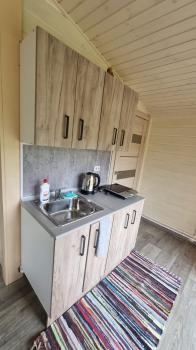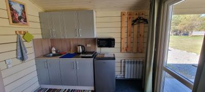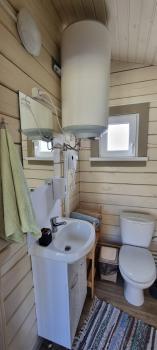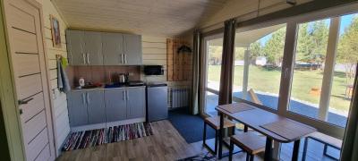 Дом с двумя спальнями, кухонной зоной, санузелом с душем, верандой.