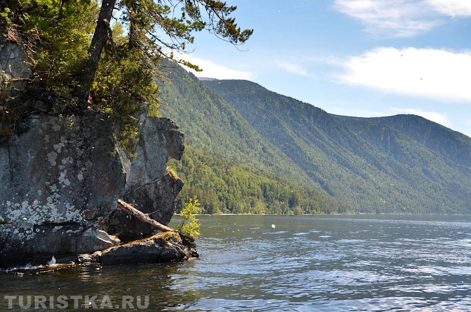 Телецкое озеро заполняет впадину между горными хребтами Корбу, Алтын-Ту и отрогами Абаканского хребта. Берега озера это горы, сплошь покрытые лесом, на больших участках береговой линии обрывающиеся в воду отвесными скалами.