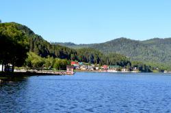 Отчасти по этой же причине, летом вода в южной части озера прогревается быстрее. Бывает, что уже в середине июня температура поверхности воды в южной части озера поднимается до 15-16 градусов, тогда как в целом это горное озеро остается холодным в течение всего года, и купание в нем занятие на любителя. В жаркие дни отдыхающие обычно окунаются в воду и тут же выскакивают, хотя иногда, при долгой теплой и безветренной погоде, поверхностные слои воды около берега могут прогреваться до 18-20 градусов. Но погода здесь может меняться несколько раз в день.