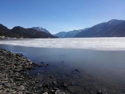 На вопрос: "Можно ли объехать Телецкое озеро на велосипедах?" иногда в шутку отвечают, что, мол, можно и даже тремя способами: либо на расстоянии километров 200 от берегов, либо на водных велосипедах, либо зимой. Но последний вариант может не удастся, поскольку ежегодно покрывается льдом только северная часть озера, а южная, наиболее глубокая, замерзает сравнительно редко, за счет притока теплых вод Чулышмана.