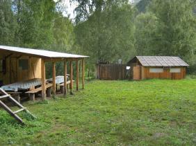 Раньше стоянка Три березы была в другом месте. И когда идешь от Белухи, то старая стоянка встречается первой. От нее надо пройти около 600 м до действующей стоянки с кафе.