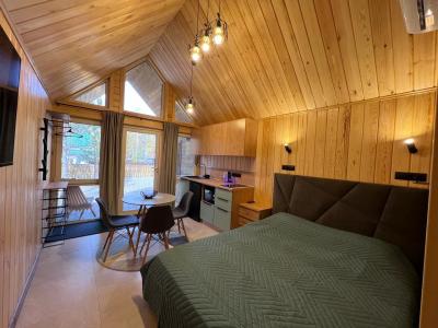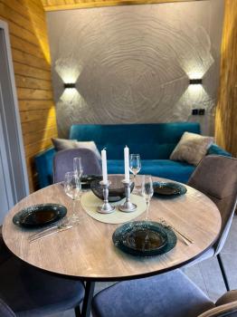- Кухня-гостиная для уютных завтраков и ужинов с панорамным видом на горы, полностью оборудованная всем необходимым!